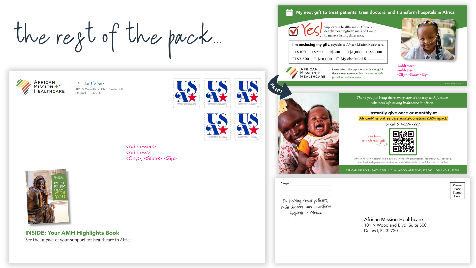 We wrote and designed this gratitude impact report to share with African Mission Healthcare (AMH) donors the good work they accomplished in the past year. This stewardship piece features stories and highlights of AMH's life-changing work in treating patients, training doctors, and transforming hospitals across sub-Saharan Africa. The direct mail pack included the 8.5"x11" gratitude impact report, a reply form, and an envelope for donors who felt moved to make an immediate gift.